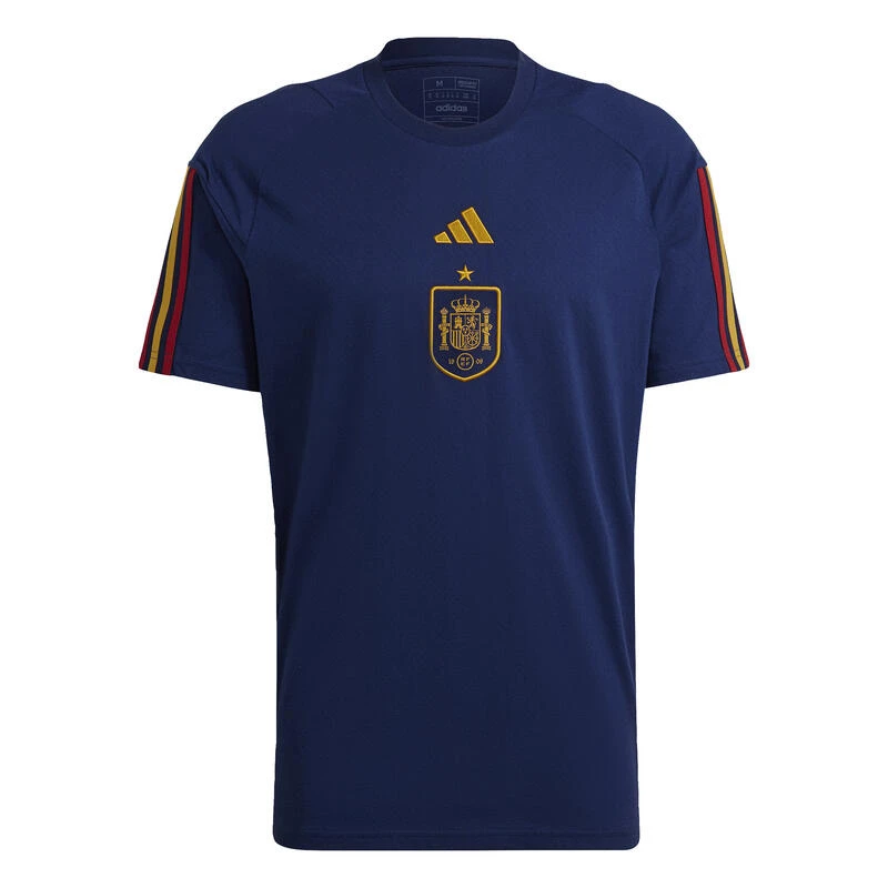 Blijf comfortabel terwijl je de sterren van Spanje volgt. Dit adidas T-shirt van een lichtgewicht katoenmix is gemaakt voor reisdagen die voorbij lijken te vliegen. Een geweven badge op de borst geeft ’t die onmisbare voetbaluitstraling.Om de grotere impact te vermijden die de productie van nieuw materiaal heeft op het milieu, is dit item gemaakt met gerecycled materiaal dat afkomstig is van post-consumer restafval en productieafval zoals snijresten.