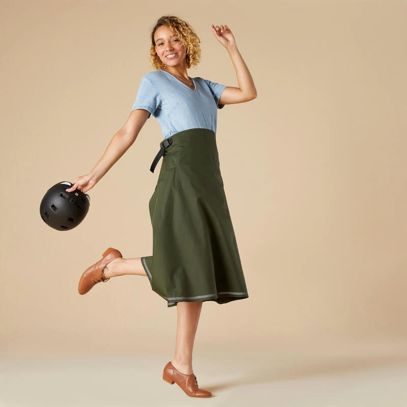 8643084Wil je je benen beschermen tegen de regen tijdens het fietsen of steppen? Deze waterdichte overrok is speciaal ontwikkeld voor dames.Laat je nooit meer overvallen door een bui met deze snel aan te trekken rok. Waterdichte en sterke stof. Ecodesigned, gemaakt in Frankrijk, perfect voor wie met de fiets naar het werk gaat.