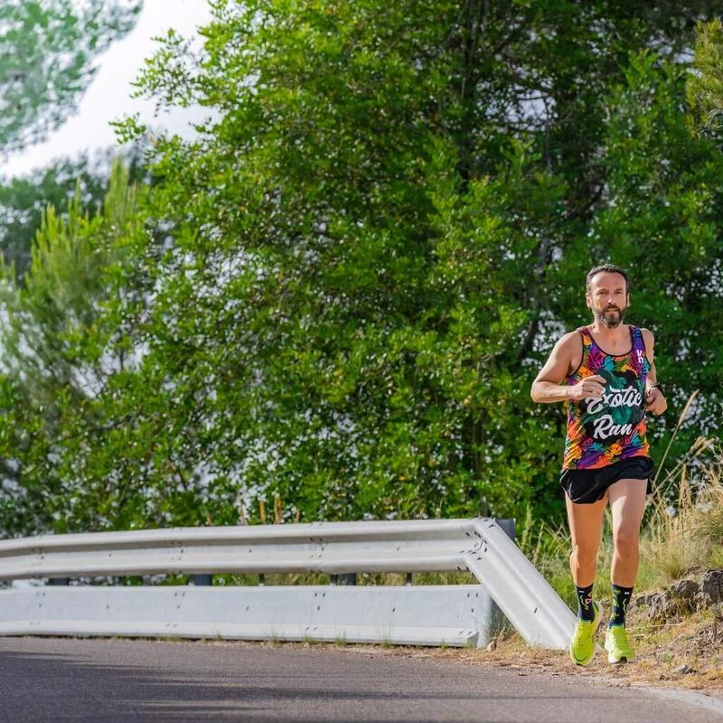 Fun TECHNICAL TANK TOP voor hardlopen en trailrunning, gemaakt van Coolmax en lichtgewicht polyester (110gr), ultralicht, zeer goed ademend, sneldrogend en antibacterieel, met overlocknaden om wrijving te verminderen.
