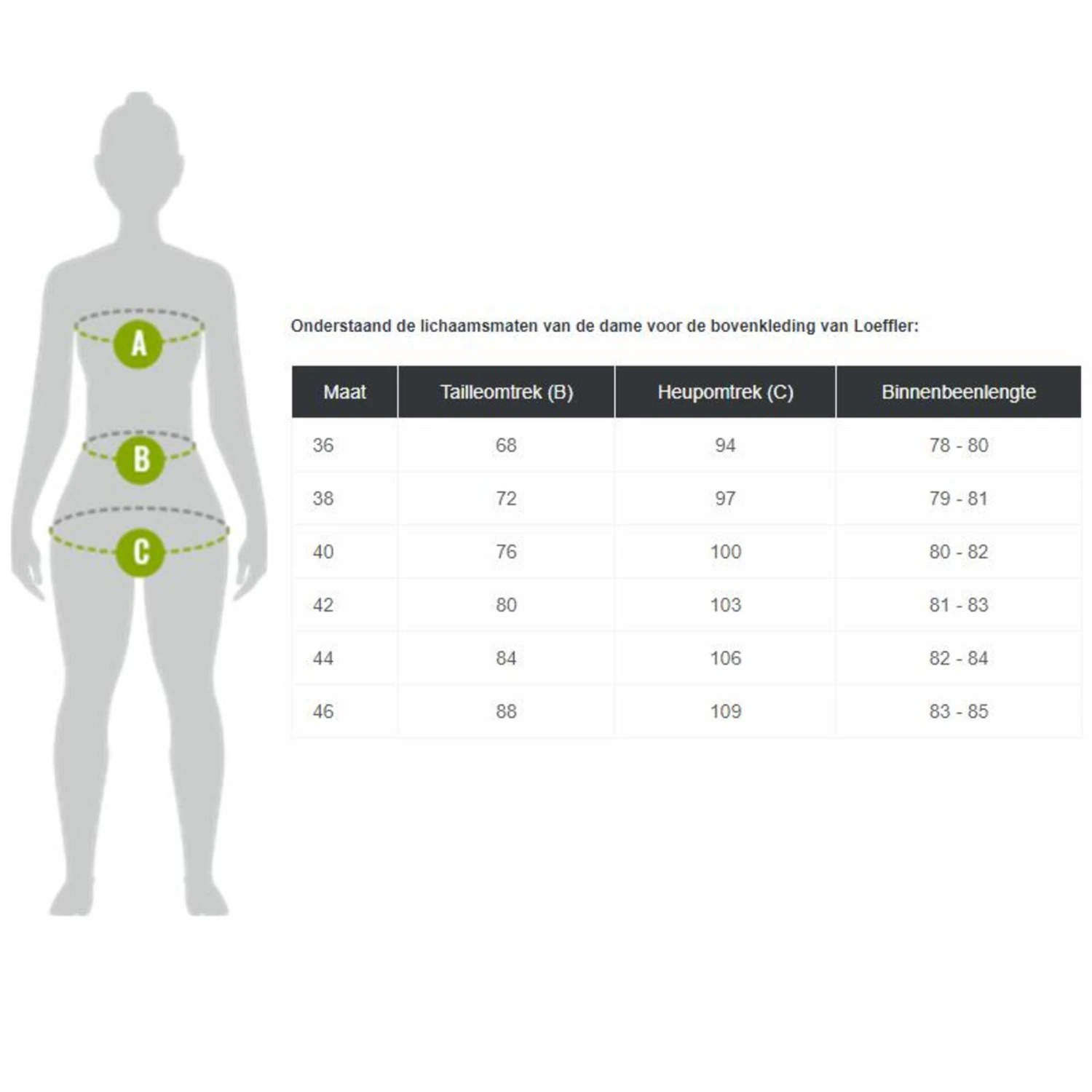 Leverbaar in de maten 34-46