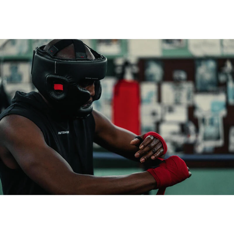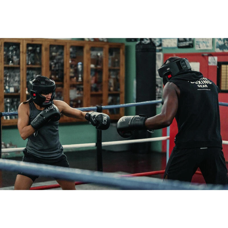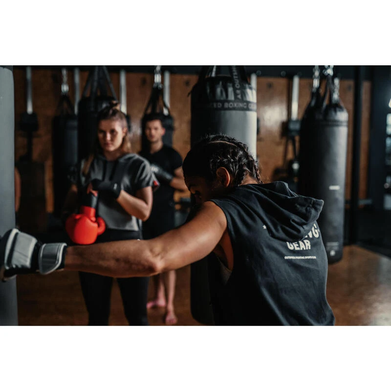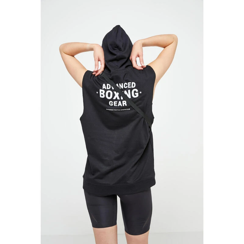8640923Voor de training van vechtsporten (Engels boksen, full contact, kickboksen, muay thai).Mouwloze hoodie voor de opwarming van boksers. Ruim aan de schouders voor veel bewegingsvrijheid. Met capuchon om je warm te houden op dode momenten.
